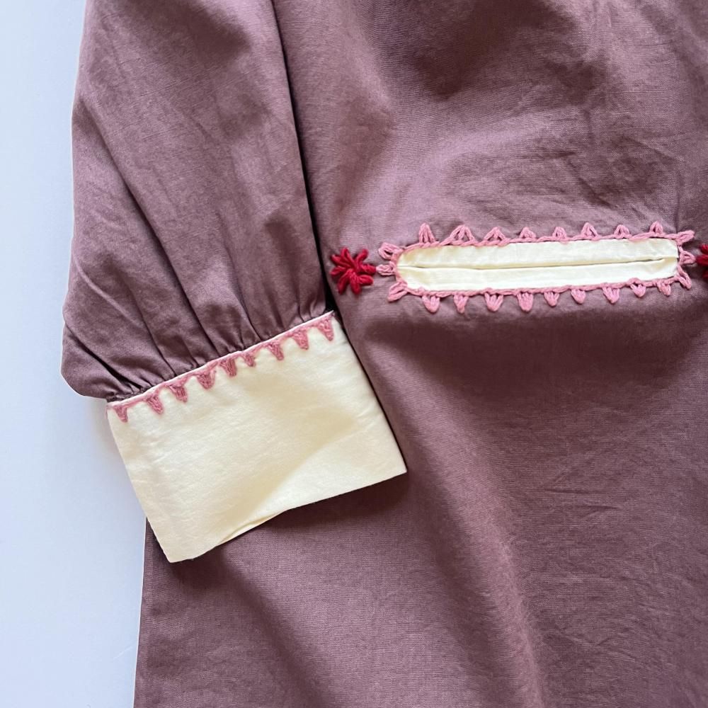 インドで丁寧に手刺繍されっており、襟から胸元にかけての刺繍やポケットの周りにも施されています。