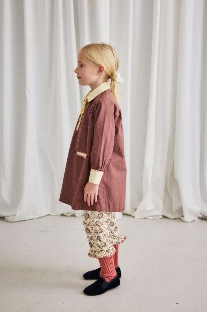 1枚でも着やすいですが、ベストやニットと重ねたり、短くなったらパンツと重ねても重宝するワンピースです。
