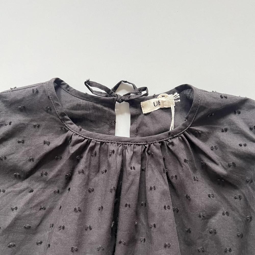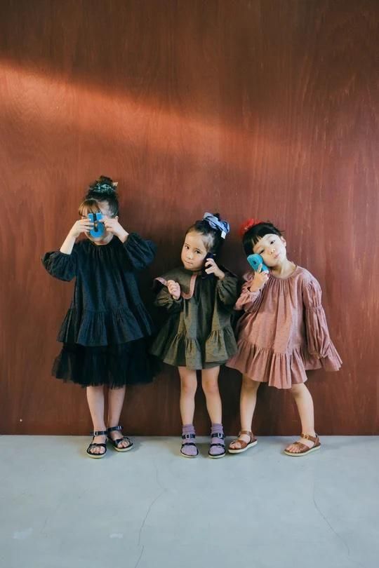 オーガニックコットンを使ったドビー素材のドレスはオールシーズン楽しめるアイテムです。大人顔負けのボリューム感ですが、軽やかに着用出来、思わずくるくると回りたくなるようなシルエットです。