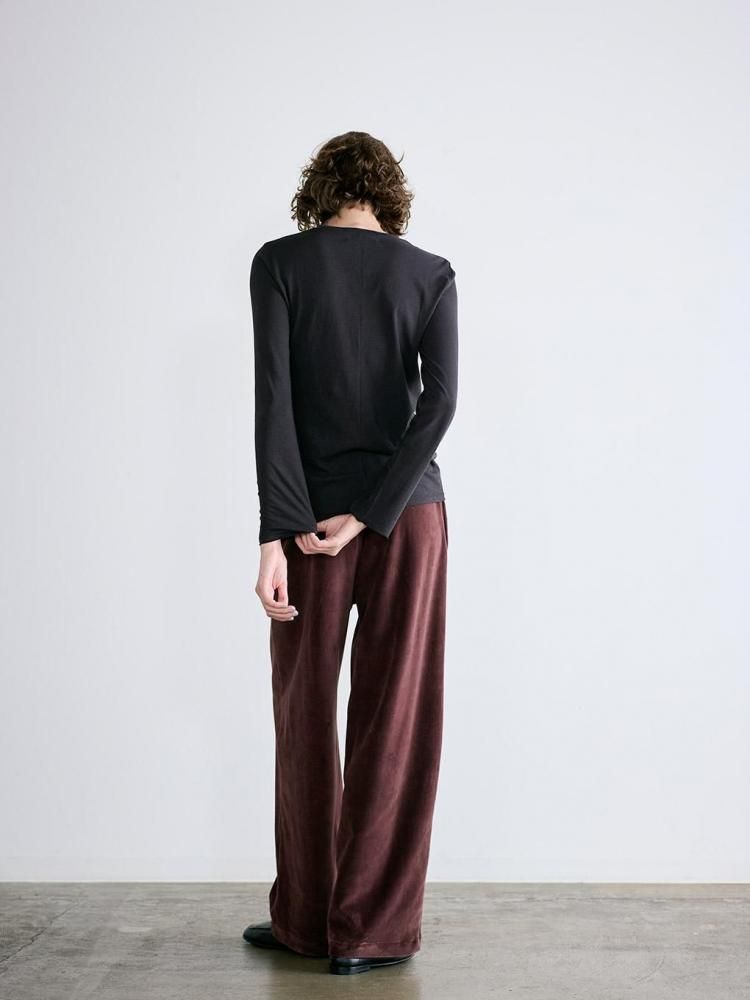 袖周りの程よい緩さのあるサイズ感がポイントのロンTは、レイヤードした時のバランスはもちろん、シンプルながらも1枚でも様になるデザインです。