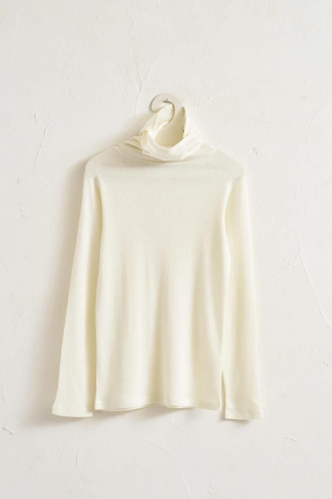洗える100%ウールのテレコ素材を使用したリブフードニット。
