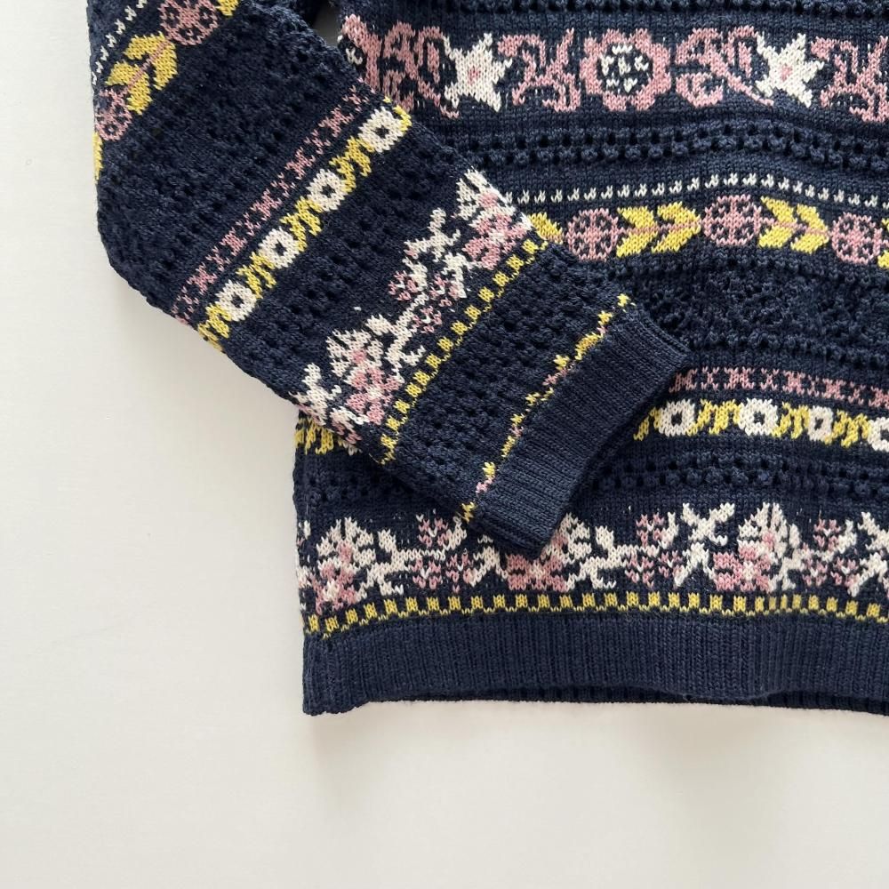 植物柄のグラフィックが特徴的なファインゲージメリノウールニット。