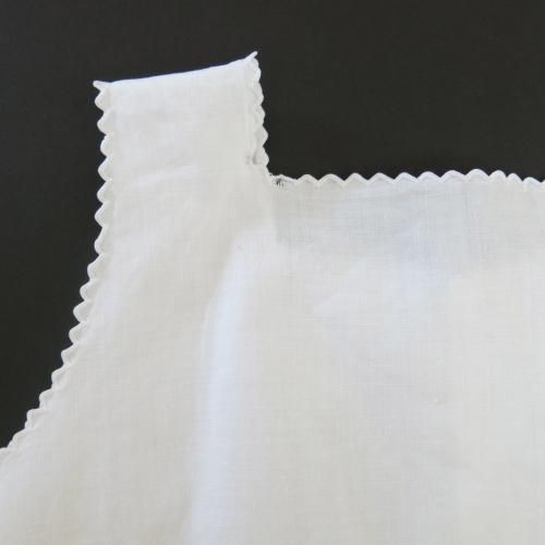 首周りと袖周りがジグザグのカットになっているのが特徴的なコットン素材のトップスは