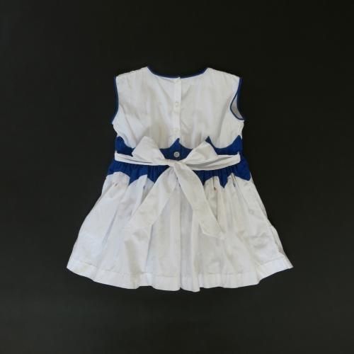 後ろボタンのかぶりタイプ。リボンは後ろで結ぶようになっていて、