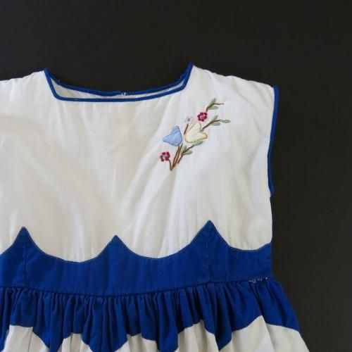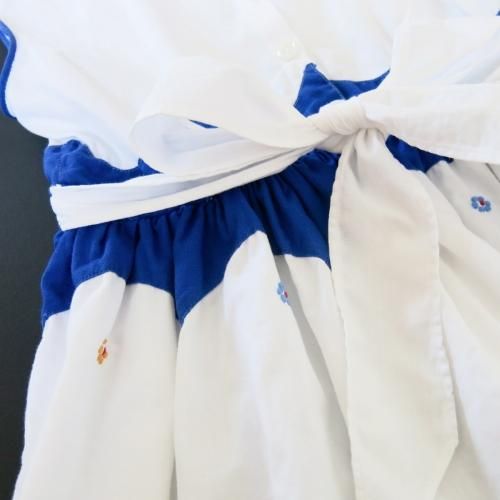 胸元とスカートのギャザー部分には花模様の刺繍がアクセントになっています。