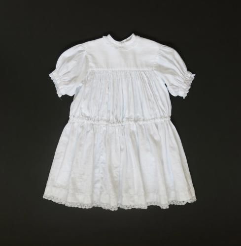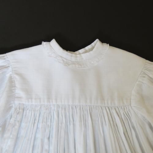 胸元からたっぷりとギャザーがよっていて、ウエスト部分は後ろで紐を引っ張るとギャザーが調整できるようになっています。