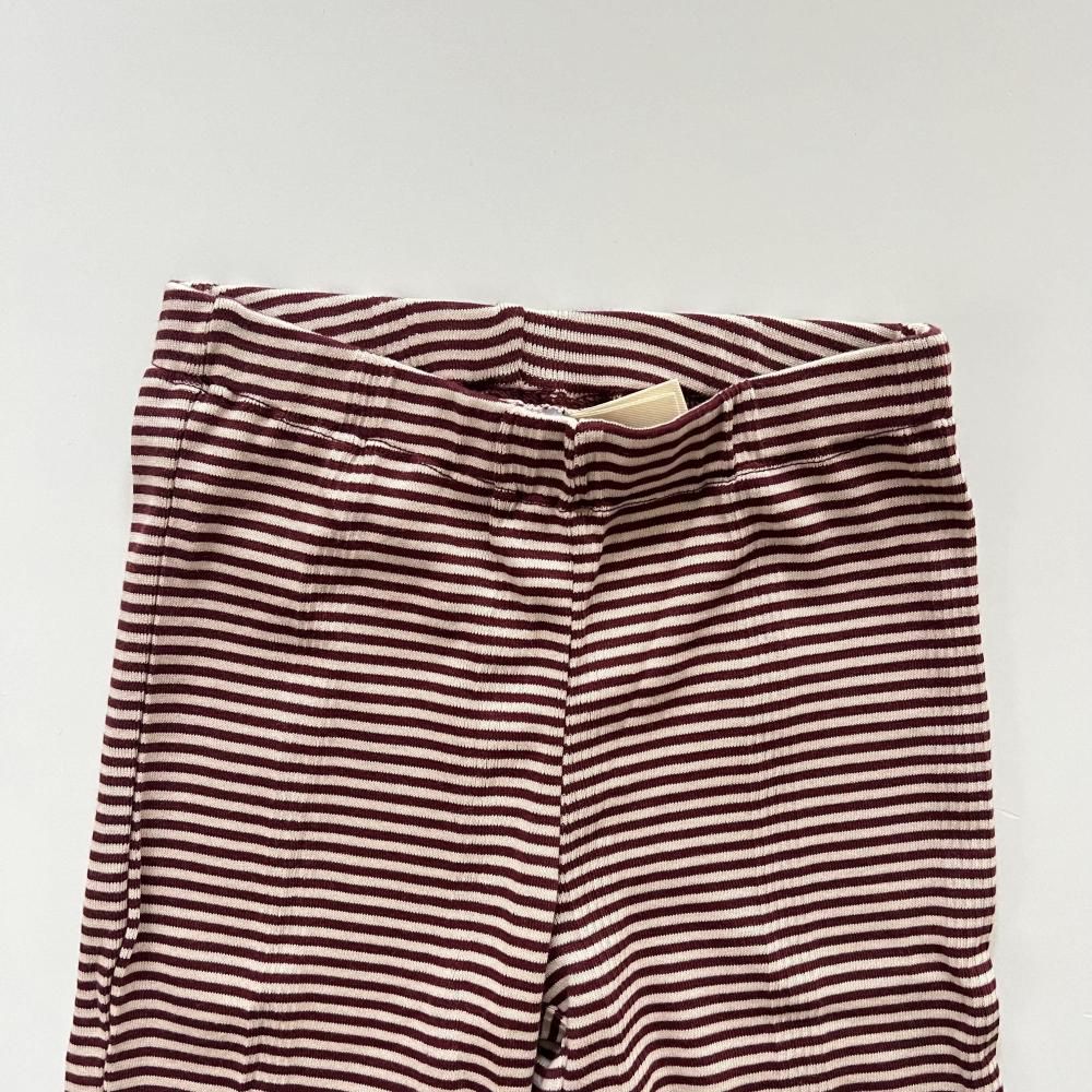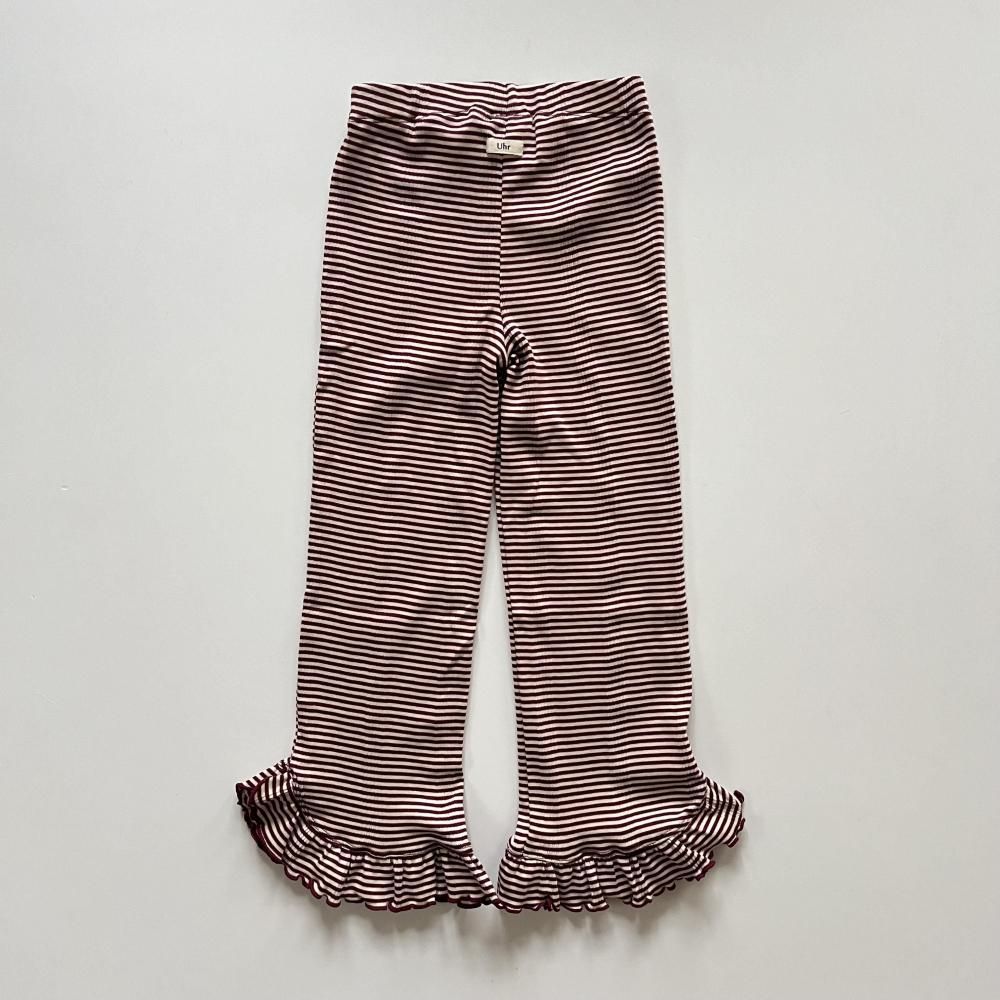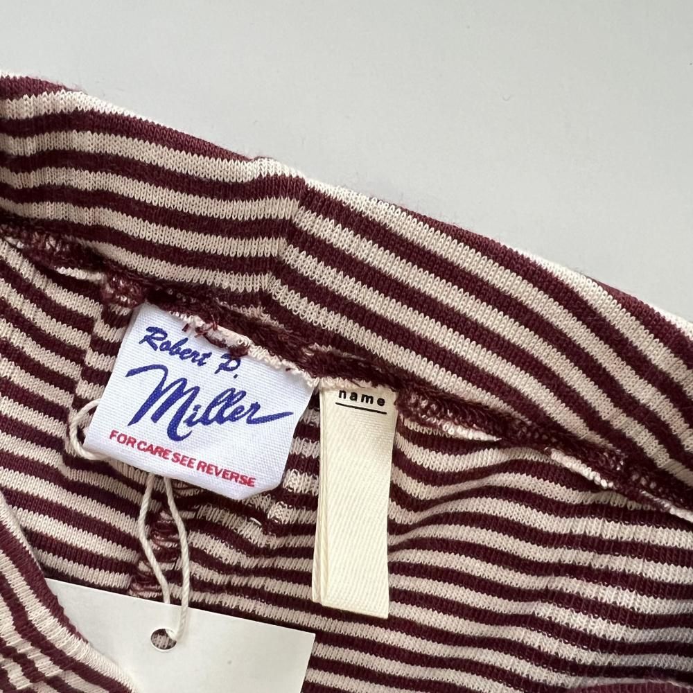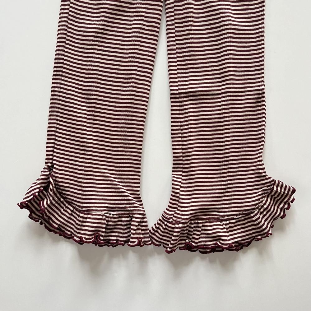 細ボーダーの程よいカジュアル感とフリルのコンビネーションが可愛いMillerとのコラボパンツ。