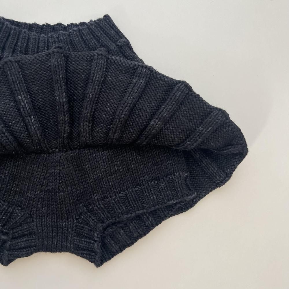 ウエストはリブ編みでフィット感があり、スカートの中にはブルマが付いているので小さなお子様でも安心して履いていただけます。