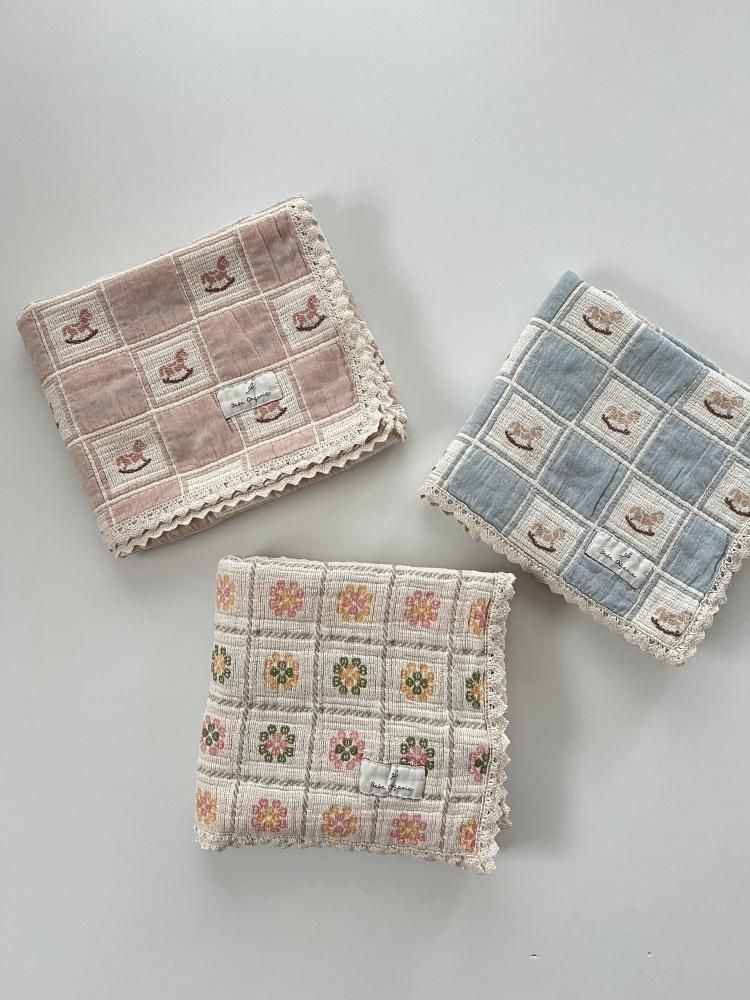 ベビーブランケットとしてだけでなく、ベビーカーにかけたり、プレイマットとしても使いやすい厚みとサイズです。贈り物にも喜ばれます。