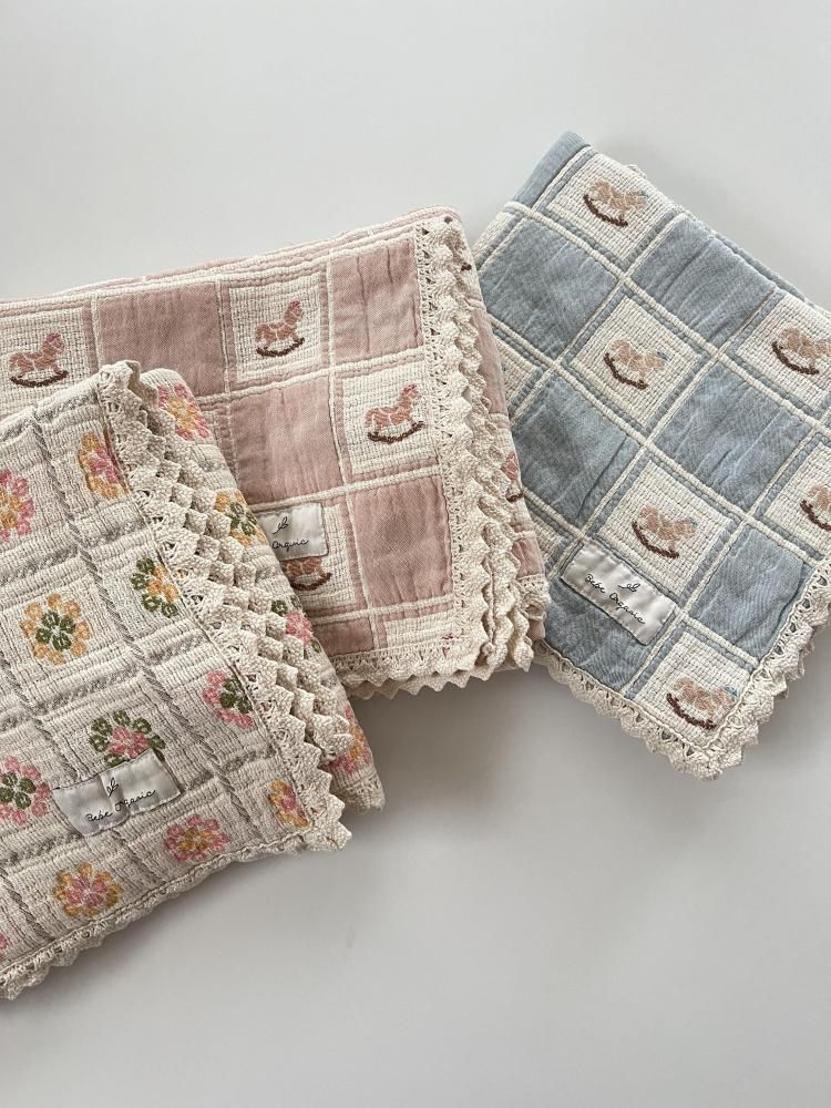 ベビーブランケットとしてだけでなく、ベビーカーにかけたり、プレイマットとしても使いやすい厚みとサイズです。贈り物にも喜ばれます。