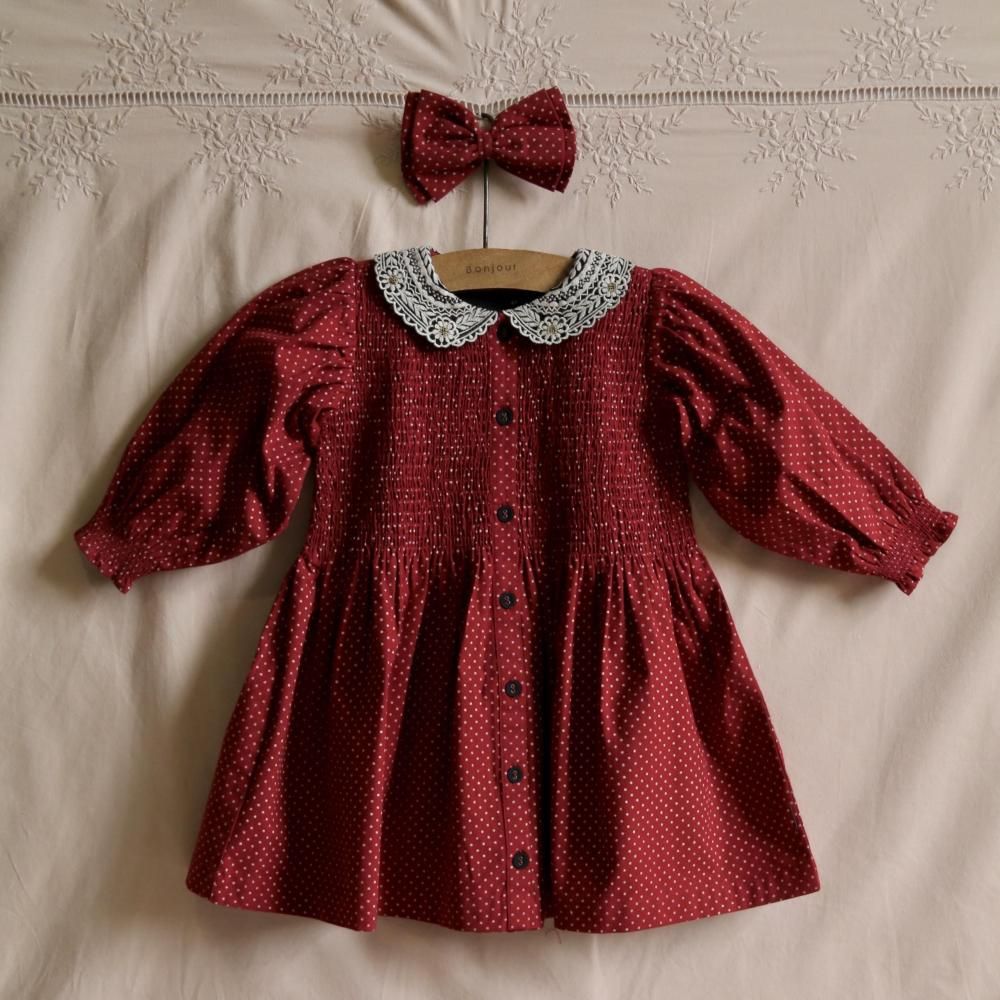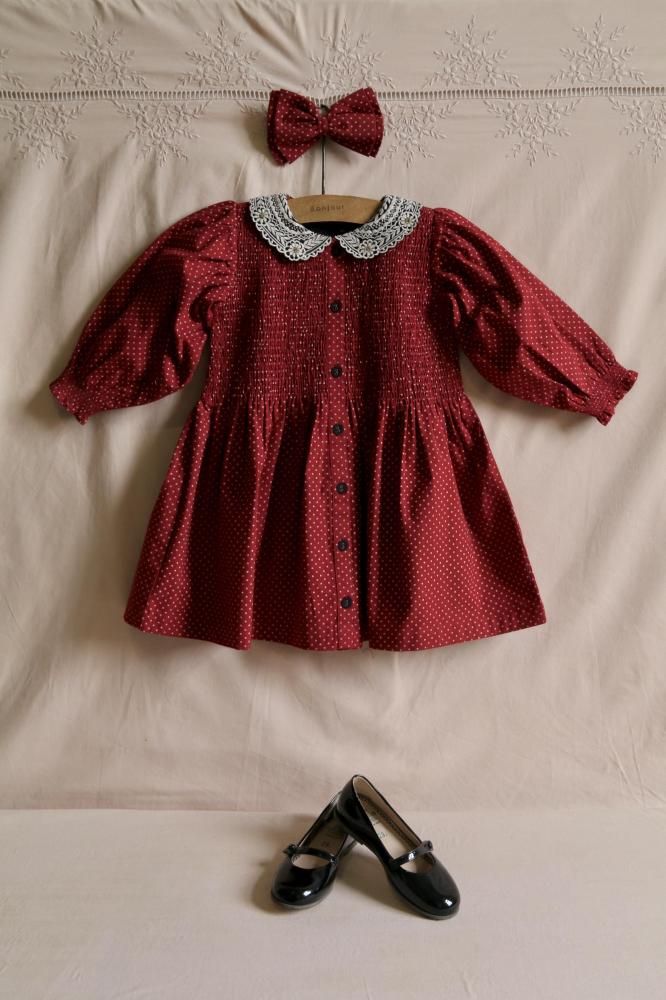 赤ベースにピンクのドットが秋冬のスタイルを華やかに見せてくれます。