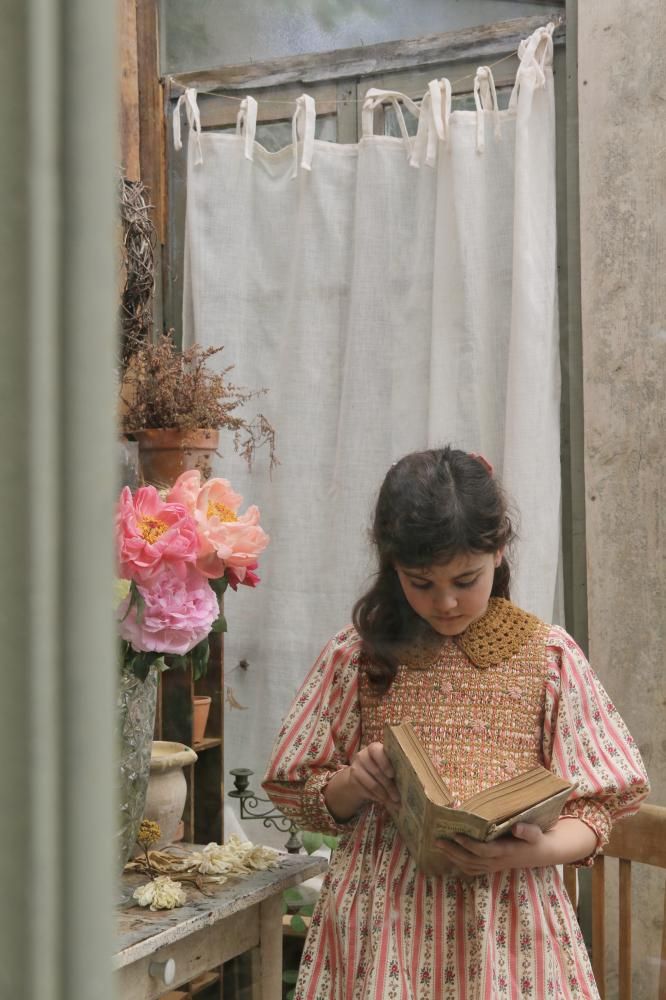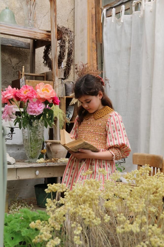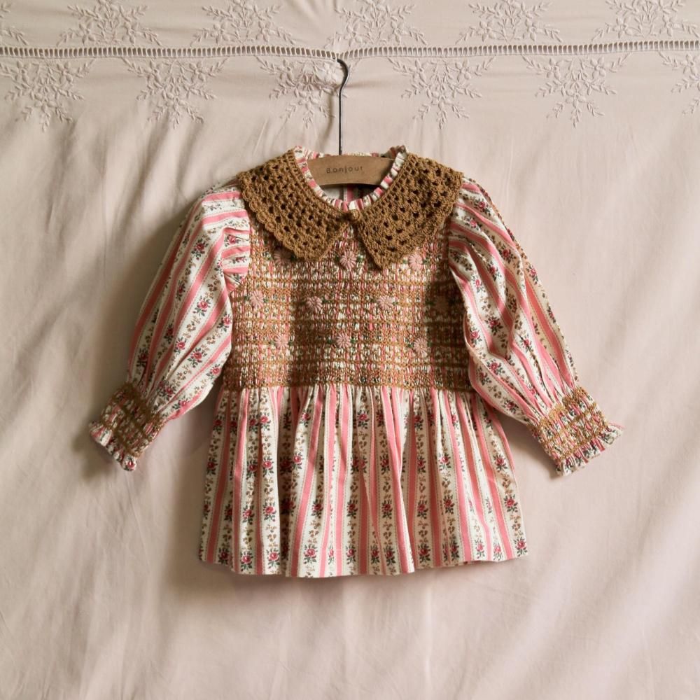 handsmock blouse with crochet collar - tapestry pink stripe print