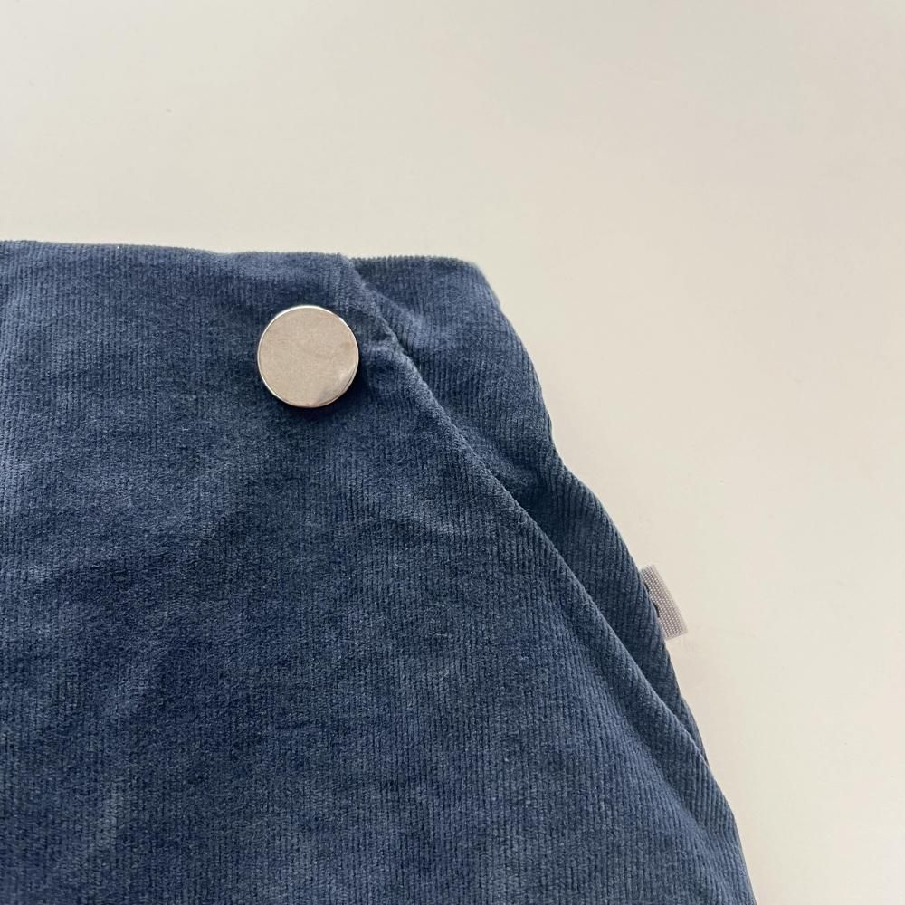 シルバーのボタンがアクセントになっており、両サイドにはポケット付き。