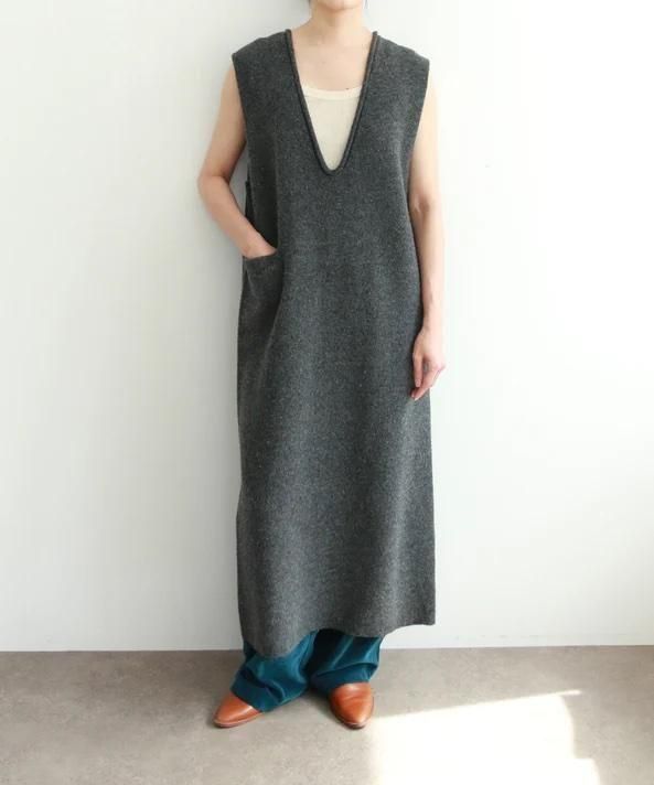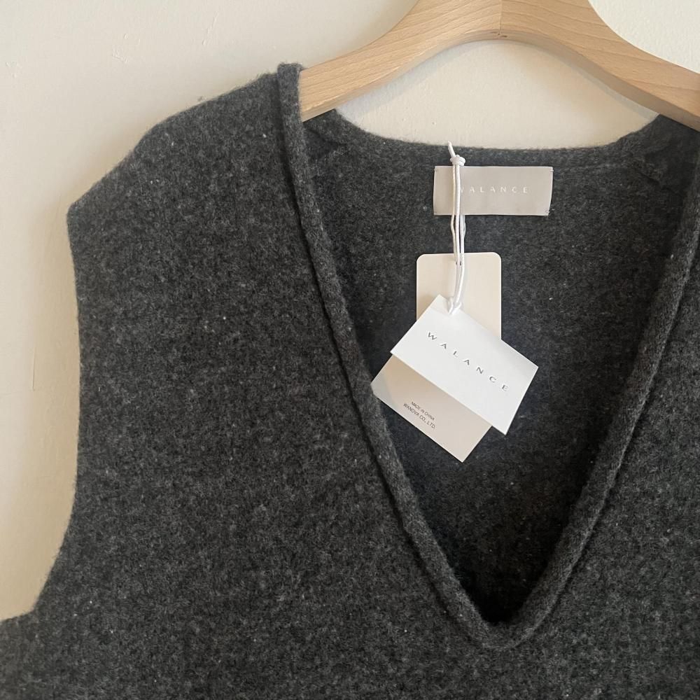 RWSエクストラファインウール素材に縮絨をかけ、ふんわり柔らかく、軽い風合いに仕上げました。深いVネックラインで、様々なアイテムとのレイヤードスタイルを楽しめます。