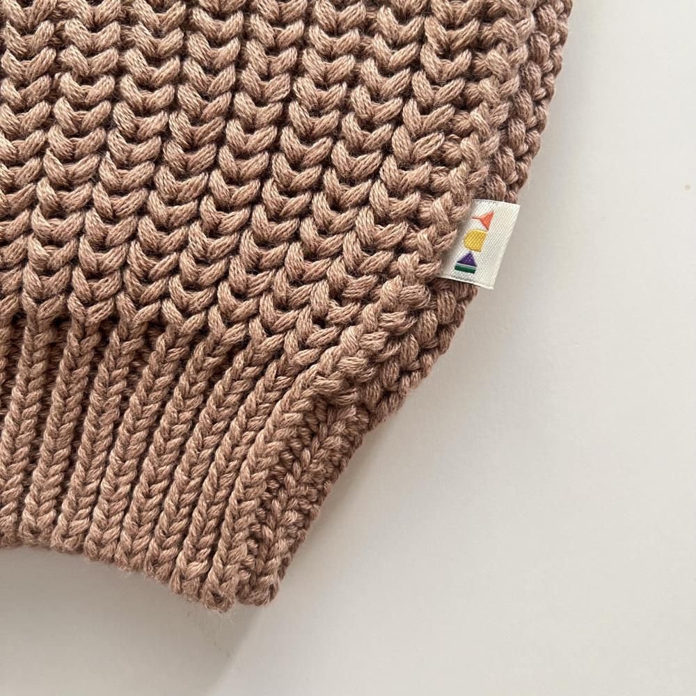 ユニセックスで着ていただけるゲージの厚いニットセーターは100%オーガニックコットンとGOTSおよびOeko-Tex認証の糸で作られています。